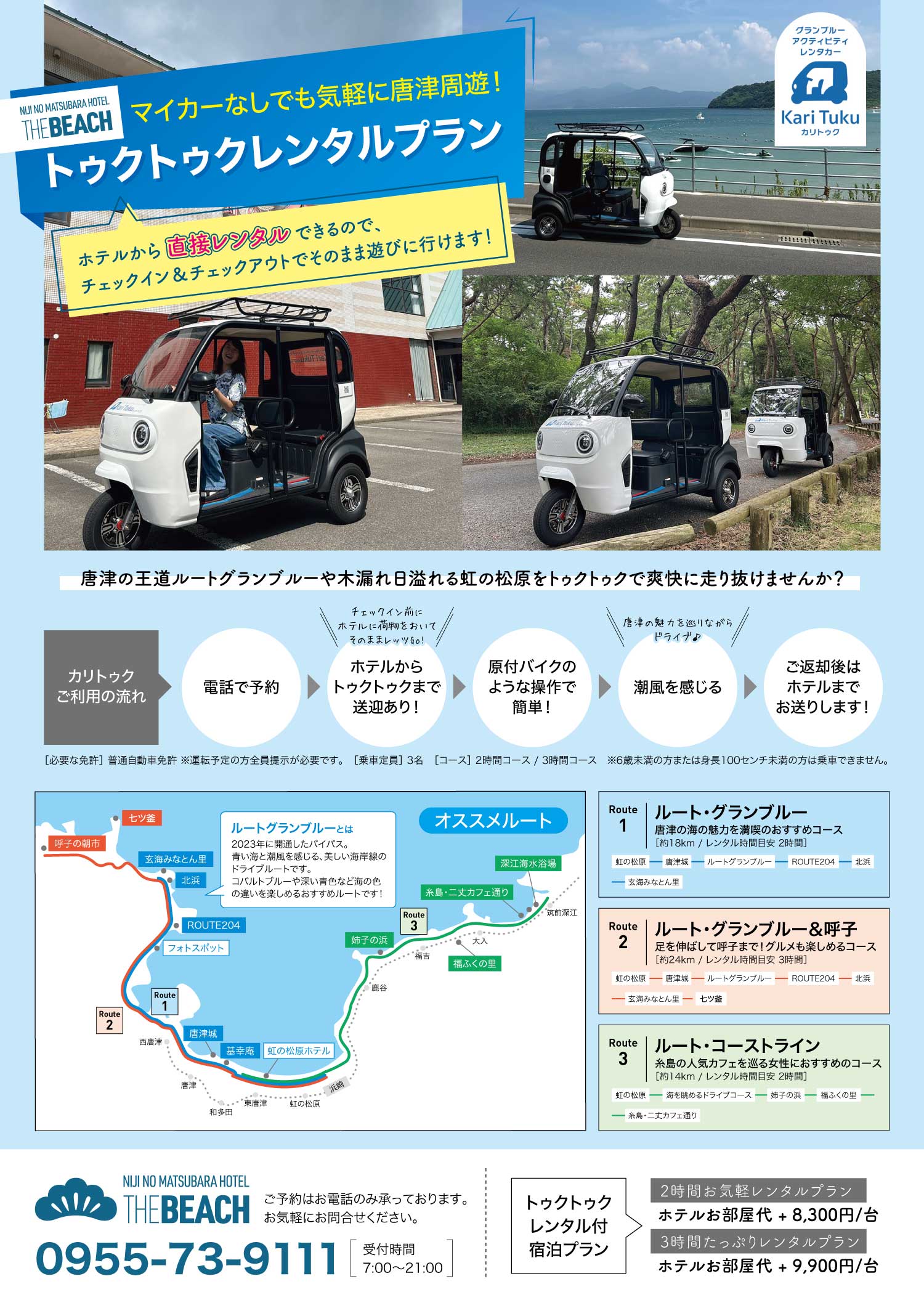 話題のトゥクトゥクで、海沿いの絶景ロード「ルートグランブルー」や虹の松原を爽快ドライブしながら